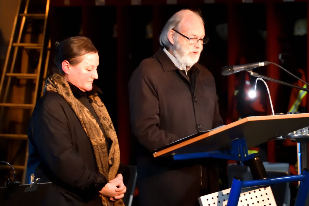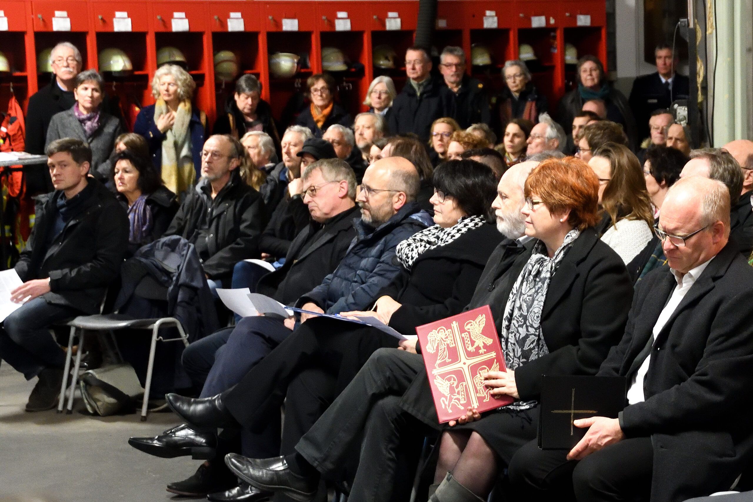 Franz Porz und Andrea Knauber wandten sich mit ihrem Fürbittgebet an Gott. Es endete jeweils mit der Bitte „Herr, gib uns deinen Frieden“. Nach dem gemeinsam gebeteten Vaterunser endete Achim Schowalter mit dem aaronitischen Segen nach der Luther- und Buberübersetzung. Das Lied: „Freunde, dass der Mandelzweig“ beschloss die Feierstunde.