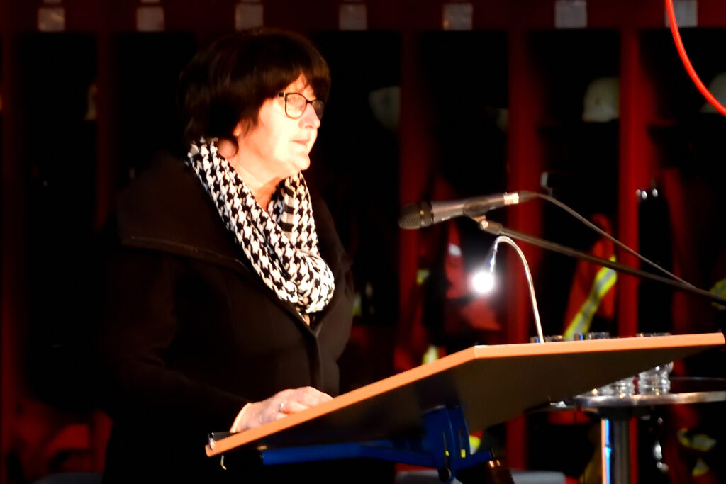 Inzwischen wurde alles zu einer gemeinsamen Feierstunde zusammengefasst, die aufgrund der Witterung im vollbesetzten Feuerwehrhaus stattfand.