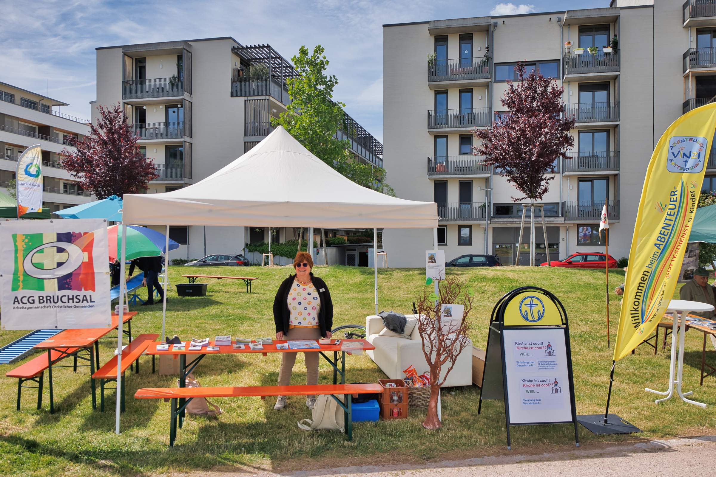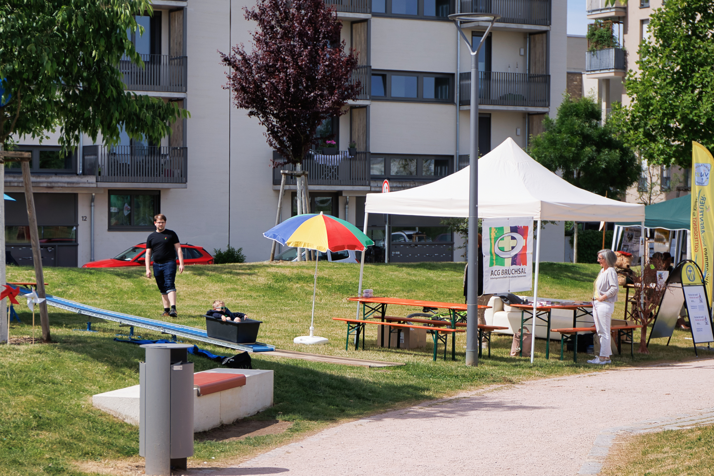 Am 24. Mai 2025 fand auf dem Gelände des Bahnstadt Quartiers ein Fest mit allen Bruchsaler Vereinen und Organisationen statt. Zwischen Exiltheater, Saalbach und Spielplatz konnten die Bewohnerinnen und Bewohner der neuen Häuser in der Bahnstadt bei strahlendem Sonnenschein sehen, was es in Bruchsal an Aktivitäten und Angeboten gibt. Vom Förderverein für die Peterskirche bis hin zur Arbeitsgemeinschaft christlicher Gemeinden (ACG) haben sich alle vorgestellt.