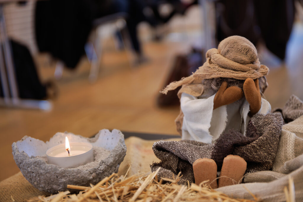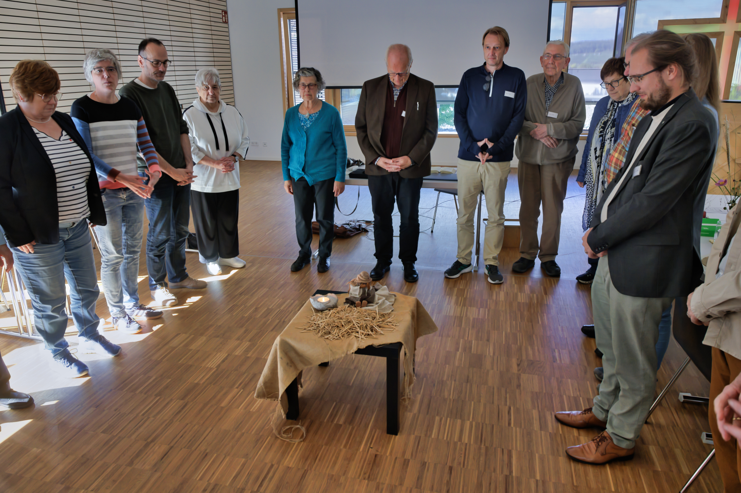 …dieser Satz aus dem Hiobbuch ist einer der bekanntesten. Der unerschütterliche Glaube des Hiob, der von Gott mit vielen Schicksalsschlägen geprüft wird, ist für die einen große Hilfe, für die anderen eine Herausforderung. Mit diesem schwierigen Buch der Bibel befasste sich der ökumenische Bibeltag am 27. September 2025 im evangelischen Gemeindezentrum in Heidelsheim. In wunderschöner Umgebung, herbstlich dekoriert und mit einem zusammengekauerten Hiob als Eglifigur in der Mitte, versammelten sich 25 Teilnehmende, um gemeinsam mit Professor Manfred Oeming von der Universität Heidelberg diesen biblischen Text zu betrachten. Die Gruppe war gut durchmischt, von Studentin bis Senioren, vertreten waren die verschiedenen Gemeinden der ACG.