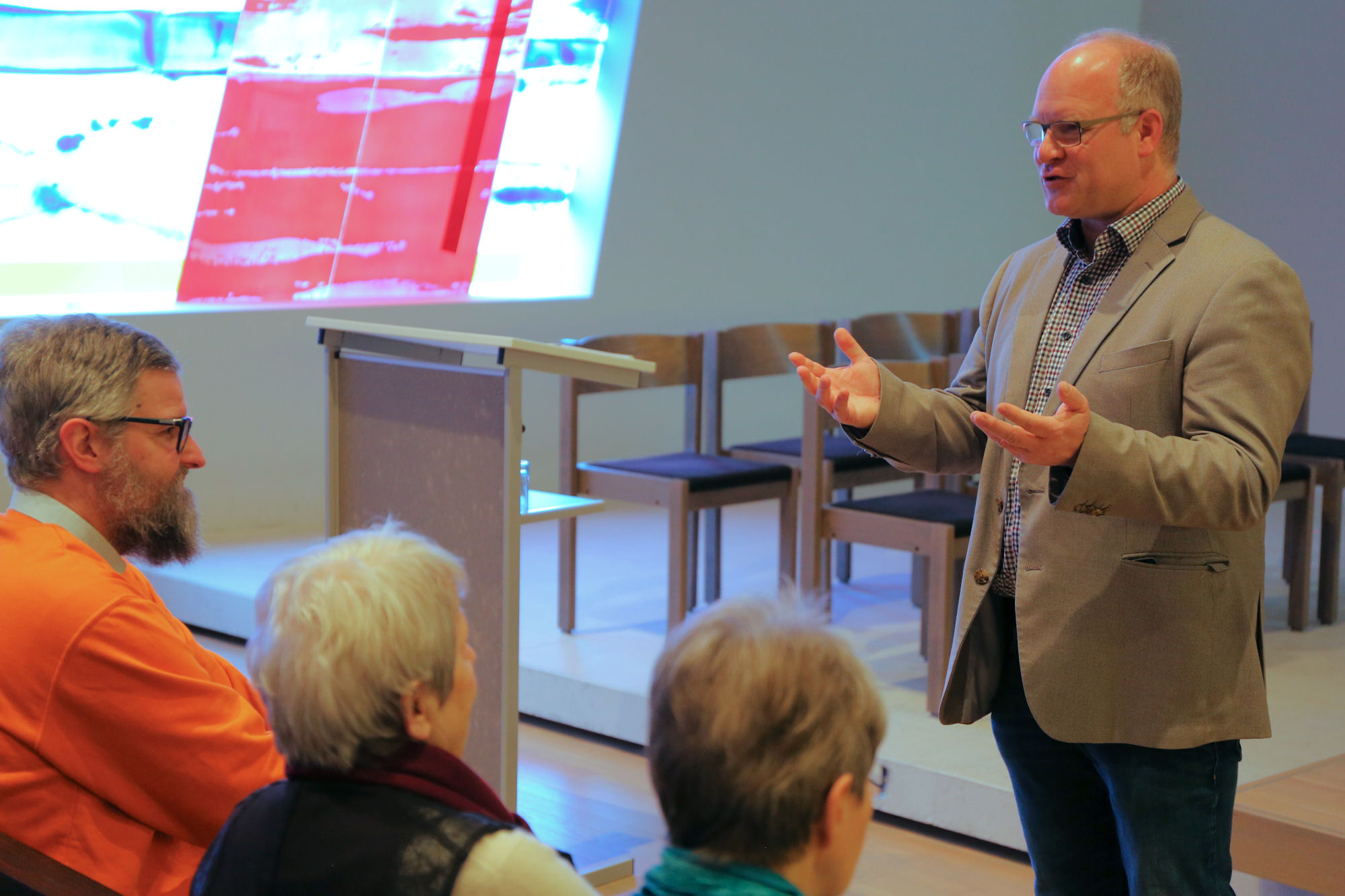 An die offizielle Begrüßung durch Pfarrer Achim Schowalter und einem ersten gemeinsamen Singen, angeleitet durch Pfarrer Schowalter am Klavier nebst Begleitung durch Cajón und E-Bass, schloss sich der erste Impulsvortrag durch Bischof Klaiber an. Das zugrunde liegende Thema „Musste nicht der Christus das erleiden? – Von der Not-Wendigkeit des Todes Jesu“ führte die zahlreichen Teilnehmer zu Beginn in die Lebenswelt, die Gebräuche und Riten ein, die im Zusammenhang mit dem Kreuzestod eine bedeutende Rolle spielen. Die mit zahlreichen Bibelstellen untermauerten, intensiven Ausführungen des Bischofs erforderten höchste Aufmerksamkeit seitens der Zuhörer und belohnte diese mit neuer Erkenntnis, neuem Wissen und manchem Aha-Erlebnis.