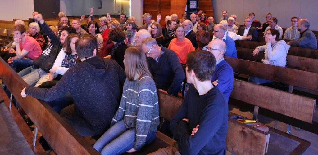 Im Anschluss hatte man die Möglichkeit an einer der angebotenen Arbeitsgruppen teilzunehmen, die mit ausgewählten Bibeltexten, Bildern und weiteren „Kreuzes“-Themen das Tagesmotto noch weiter vertieften. Nach Rückkehr ins Plenum konnten Erfahrungen und Erlebnisse aus den Arbeitsgruppen geteilt werden. Bischof Klaiber stand für vertiefende Fragestellungen mit seinem umfangreichen Wissen bereit und beantwortete gewissenhaft die an ihn gestellten Fragen.