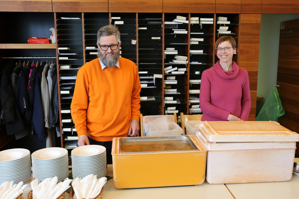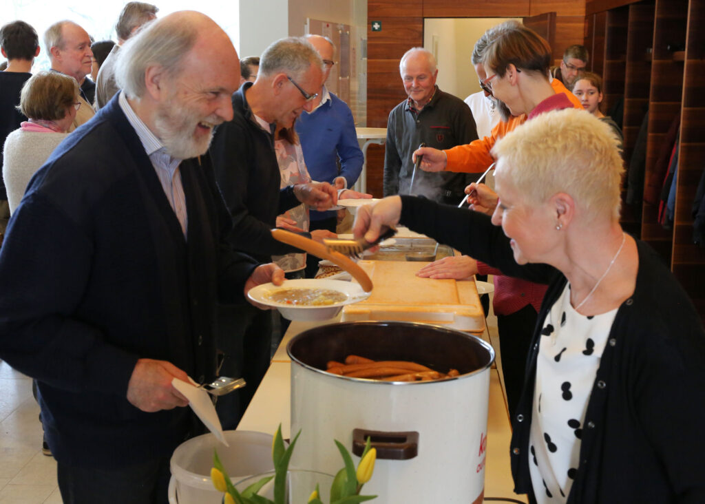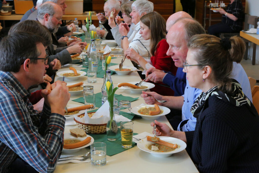 Zur Mittagspause war der Tisch im Foyer gedeckt, so dass keiner hungrig in den Nachmittag starten musste. Zudem wurde die Pause genutzt zur Überbrückung von Kirchengemeindegrenzen, zum Erkennen des Verbindenden im Glauben und zum persönlichen Kennenlernen. Des Weiteren stand Bischof Klaiber für das eine und andere Gespräch zur Verfügung.