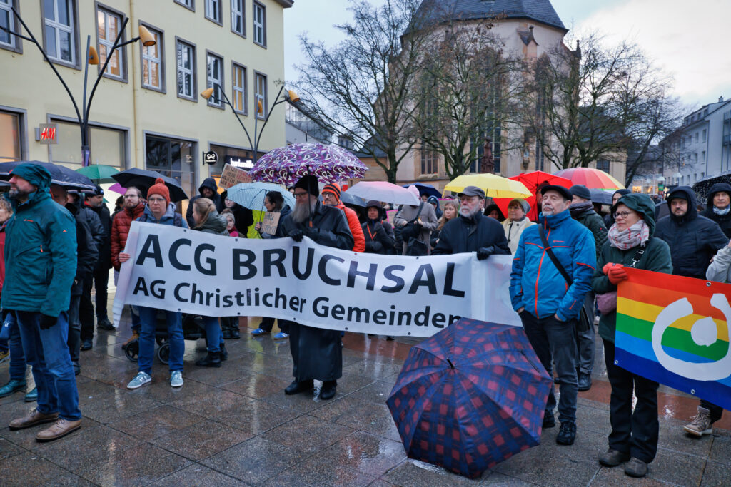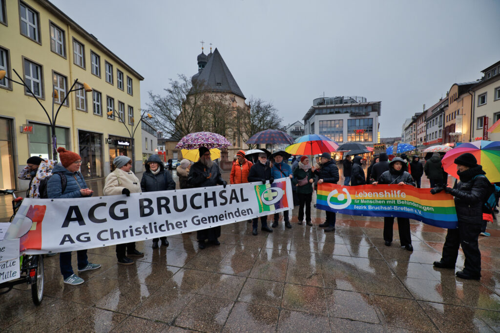 „Wir sind mehr“, so war die Kundgebung am 13. Februar 2025 auf dem Bruchsaler Marktplatz überschrieben, bei der es genau 10 Tage vor der Wahl um Zusammenhalt gehen sollte, gegen soziale Kälte, Fake News und Hetze.