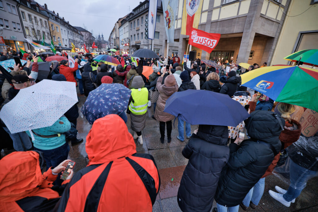 Nach einer Schweigeminute für die Opfer der Anschläge in Magdeburg, Aschaffenburg und der Ereignisse in München wurden die Reden bei leider strömendem Regen gehalten. Am Ende hieß es „Lass warm und hell die Kerzen heute flammen“ und die Handylichter erstrahlten beim Lied „Von guten Mächten“, das Dietrich Bonhoeffer vor 80 Jahren im Gefängnis geschrieben hat.
